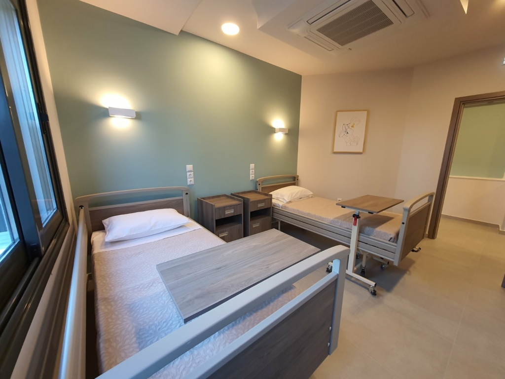 Οι θάλαμοι νοσηλείας είναι ευρύχωροι, άνετοι και απόλυτα ασφαλείς. Διαθέτουν εσωτερικό μπάνιο με εγκαταστάσεις ΑΜΕΑ, τηλεόραση, ευρύχωρες ντουλάπες και μπαλκόνι με κάγκελα για την ασφάλεια των ασθενών.